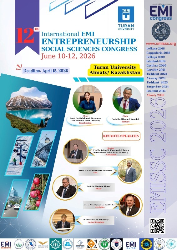 The 12th International EMI Entrepreneurship and Social Sciences Congress will be held on June 10-12, 2026, in Almaty, Kazakhstan, hosted by Turan University.