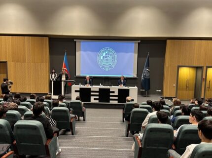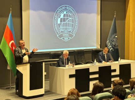 A meeting with Academician Mukhtar Imanov and renowned poet Rustam Behrudi was held with students at the Azerbaijan State University of Economics (UNEC).