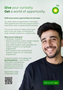 BP şirkətində 2026 erkən karyera proqramları üçün müraciətlər artıq açıqdır!Azərbaycanda təklif etdiyimiz erkən karyera proqramları çərçivəsində məzun və təcrübəçi yerləri mövcuddur: