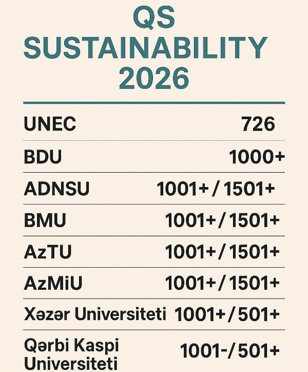 O bildirib ki, həm THE-nin “Interdisciplinary Science Rankings 2026”, həm də QS-in “Sustainability 2026” reytinqlərində Azərbaycan universitetləri mövqelərini gücləndiriblər. Osman Gündüz UNEC-in hər iki reytinqdə ölkə üzrə 1-ci olması və qlobal miqyasda irəliləməsini xüsusi vurğulayıb.