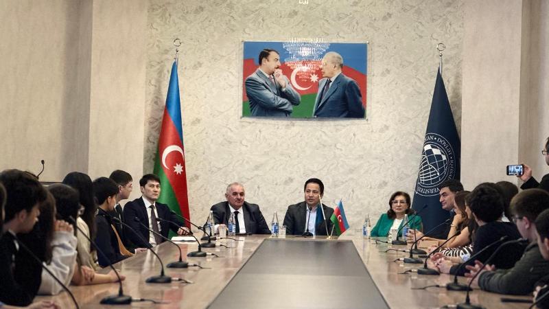 Посол Алим Байел, начав свою речь на азербайджанском языке, затронул историческое и стратегическое значение азербайджано-казахстанских отношений и отметил важность дальнейшего углубления связей между двумя братскими народами. Студенты с большим интересом слушали посла, владеющего пятью языками, включая азербайджанский и турецкий, и его искреннее мнение о повседневной деятельности дипломата, специфике международных переговоров и личном опыте.