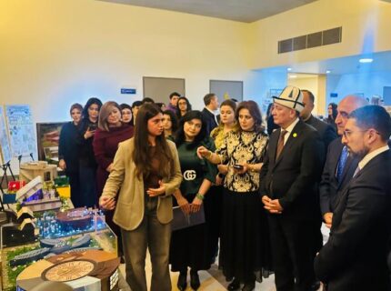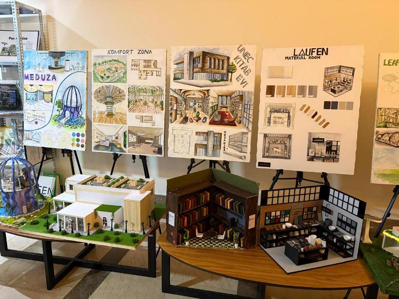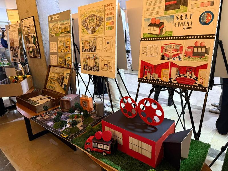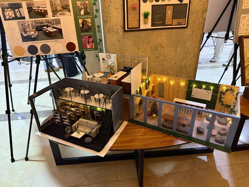 Сначала участники ознакомились с богатой выставкой работ студентов-дизайнеров. На выставке были представлены социальные проекты для пожилых людей и лицам с инвалидностью, работы в области графического дизайна, ребрендинг и образцы одежды, проекты по охране окружающей среды, а также социально ориентированные проекты, направленные на восстановление Карабаха. Особый интерес вызвали модель дома престарелых, инклюзивный дом, инновационная библиотека и другие проекты, разработанные студентами для восстановления Карабаха.