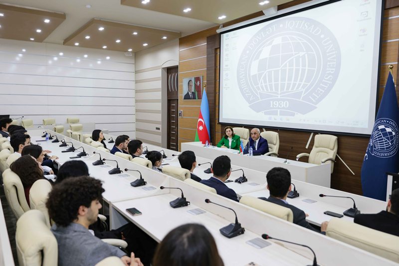 В ходе встречи профессор Адалат Мурадов рассказал о важной роли студентов в процессе управления университетом. Он отметил, что одной из основных целей «Стратегии развития UNEC 100» является усиление деятельности и увеличение числа студенческих организаций.