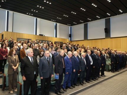 UNEC-in rektoru, professor Ədalət Muradov tədbirin açılışında çıxış edərək, AMEA-nın kollektivini və bütün elmi ictimaiyyəti yubiley münasibətilə təbrik edib. Rektor bildirib ki, Akademiyanın 80 illiyi təkcə bir yubiley deyil, Vətənə elmlə xidmətin 80 ili deməkdir, eləcə də milli düşüncənin, elmi ənənənin və intellektual gücün təntənəsidir: “Azərbaycan Milli Elmlər Akademiyası elmin milli məbədidir. Bu məbəd yalnız tədqiqatların aparıldığı yer deyil, həm də elmə inamın, düşüncəyə hörmətin rəmzidir”.