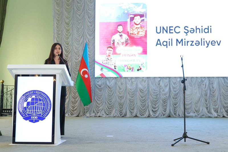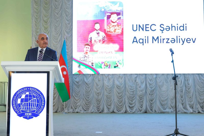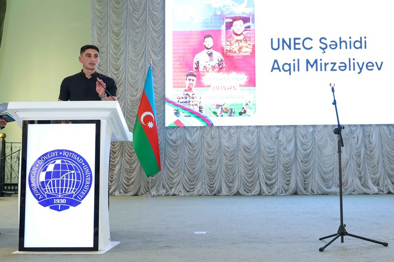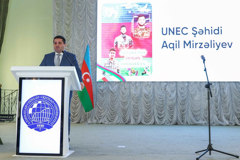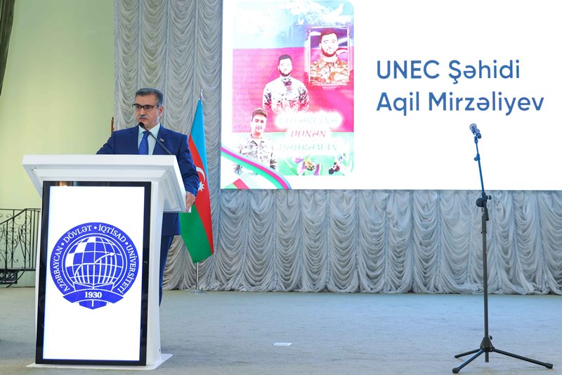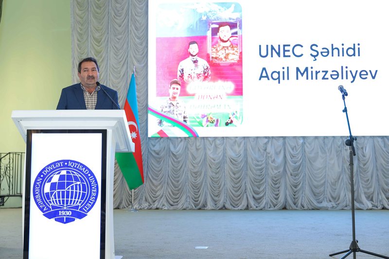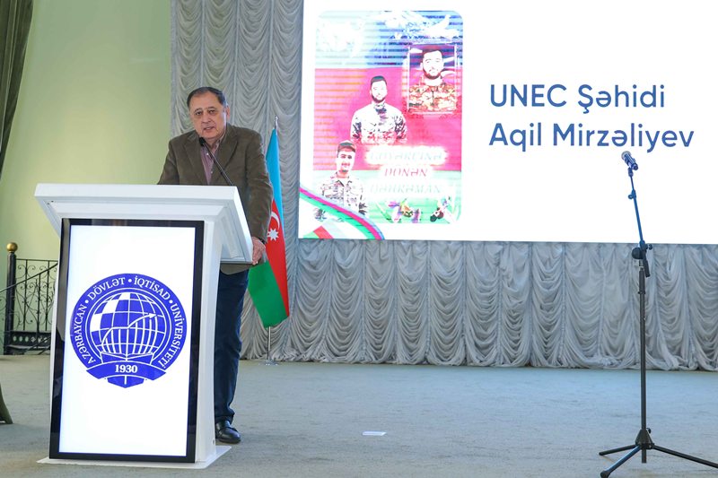 Rəsmi hissəni giriş sözü ilə açan UNEC-in rektoru, professor Ədalət Muradov şəhid ailələrinə dövlət tərəfindən göstərilən diqqət və qayğıdan söz açıb, onların xatirəsinin əziz tutulmasının və yaşadılmasının hər birimizin mənəvi borcu olduğunu deyib: “Şəhidlərimiz bizim milli kimliyimizdir, yaddaşımızdır. Şəhid olmuş məzun və tələbələrimiz UNEC dəyərlərinin canlı simvoludur. Aqil də bu dəyərlərdən biridir. O, bu universitetin auditoriyalarında dərs oxuyub, bu divarların arasında gələcəklə bağlı arzular qurub və arzularını Vətən yolunda fəda edib. Aqil bu gün də bizim aramızdadır, onun ruhu bu zalda dolaşır O, ölmədi, adını əbədiləşdirdi. Aqil kimi gənclər bu xalqın qürurudur, onların xatirəsi isə əbədiyaşardır.”