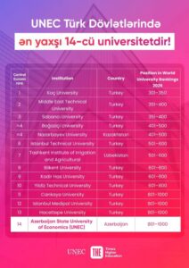 Koç Universiteti region üzrə 248 ali təhsil müəssisəsi arasında 1-ci, Orta Doğu Texniki Universiteti 2-ci və Sabancı Universiteti 3-cü yeri tutub. Qazaxıstanın Nazarbayev Universiteti 4-cü, Özbəkistanın Daşkənd Suvarma və Kənd Təsərrüfatının Mexanikləşdirilməsi İnstitutu isə 7-ci olmaqla ilk onluqda qərarlaşıblar. UNEC isə Azərbaycanda 1-ci, ümumi reytinqdə 14-cü olmaqla ilk 15-likdə yer alıb.