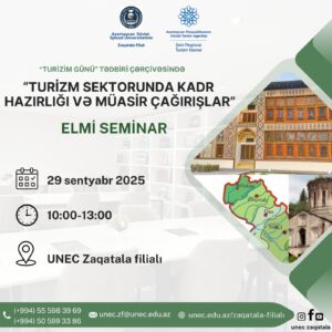 “Turizm Günü” tədbirləri çərçivəsində “Turizm sektorunda kadr hazırlığı və müasir çağırışlar” mövzusunda elmi seminar keçiriləcəkdir.