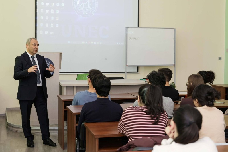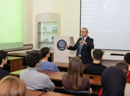 Tələbələrin böyük maraqla dinlədikləri mühazirə zamanı müasir logistika sistemlərində nəqliyyatın strateji əhəmiyyəti və beynəlxalq ticarətdə oynadığı rolu, eləcə də mövzu ilə bağlı digər suallar Anar Rzayev tərəfindən cavablandırılıb.
