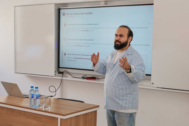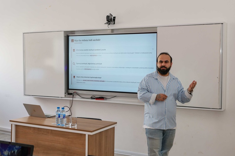 Təlim generativ süni intellekt və yaradıcı texnologiyalar üzrə mütəxəssis Ümid Salay tərəfindən aparılıb. Təlim zamanı iştirakçılara süni intellekt texnologiyalarının müasir imkanları, generativ süni intellekt alətlərinin funksiyaları və onların kitabxana-informasiya xidmətlərində, elmi tədqiqat prosesində və məlumatların emalında tətbiqi barədə geniş məlumat təqdim olunub. müzakirə edilib.